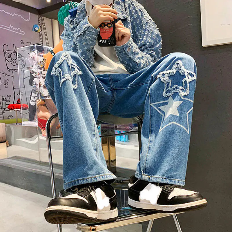 Crafted from high-quality cotton, these jeans ensure all-day comfort throughout the seasons—spring, summer, autumn, or winter. The loose straight fit offers a relaxed silhouette, perfect for any casual outing or street style ensemble.